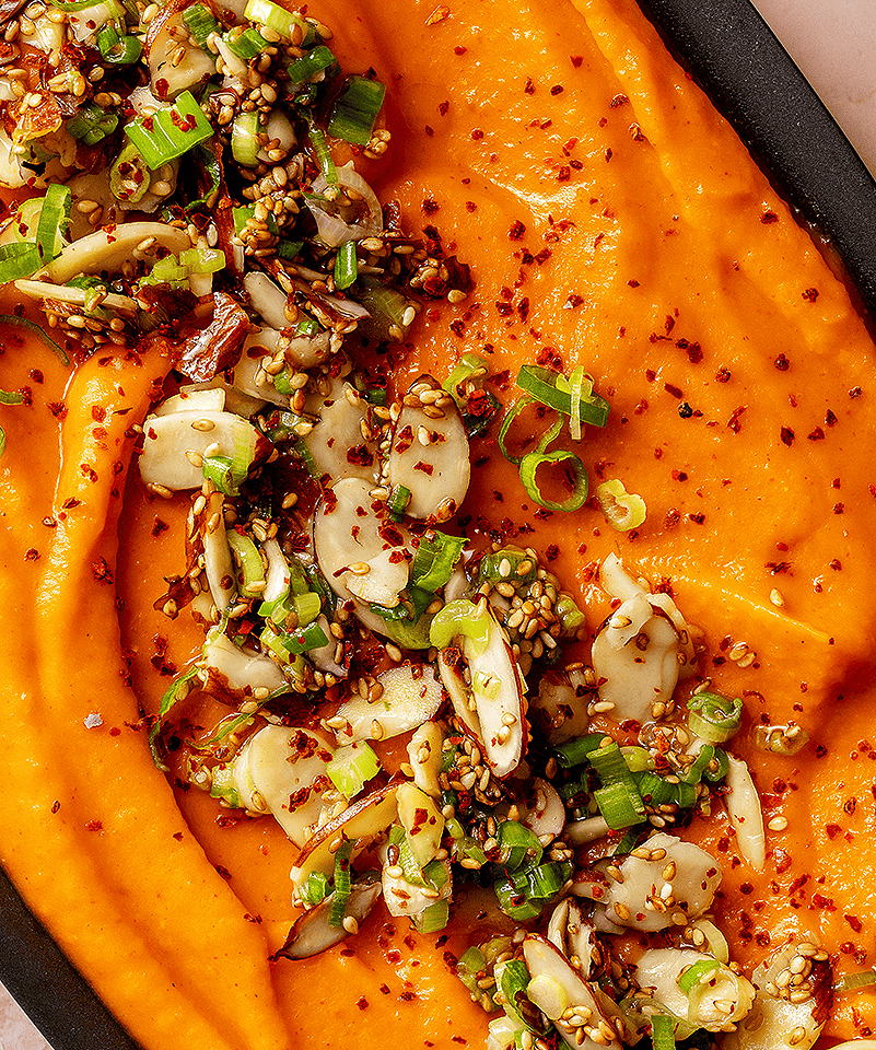 This gochujang butternut squash purée is creamy and spicy, making it the perfect addition to all your autumn dinners this year.